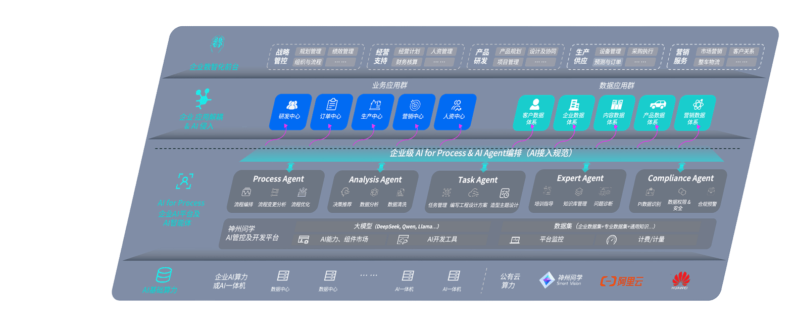 端到端的一站式AI工作空间深度融合了从企业战略规划到日常经营的全流程业务板块,,,,定向解决车企内部领域多、、、部门多、、链条长、、、场景碎片化等难题,,,,支持车企快速构建以AI为核心的生产力写作体系,,实现任务执行与AI能力的无缝集成与交互