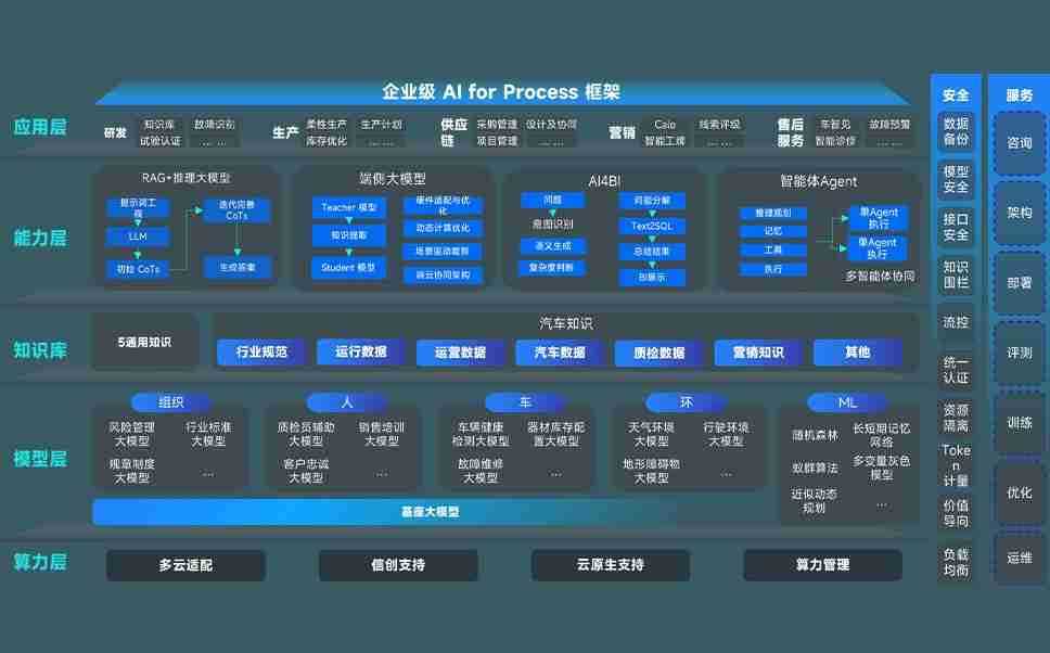 云顶国际8588yd问学智车解决方案是一套基于AI技术的汽车行业智能化系统,,,,覆盖从底层算力到顶层AI应用的全栈方案。。。方案由算力层、、、、模型层和应用层组成:算力层,,方案支持多种一体机配置,,,具备云端灵活部署、、、多云适配以及动态优化计算资源的能力;模型层,,云顶国际8588yd问学平台版提供了企业级AI应用一站式构建与管理平台,,,,支持基于后训练强化技术的汽车企业专属模型的训练、、、评测和运营;应用层,,云顶国际8588yd问学DeepSeek版提供包括超级员工、、、智能招采、、、智能营销、、智能客服、、AI for BI等一系列解决方案,,可助力汽车行业实现数字化转型,,让管理更智能、、、响应更敏捷。。。。